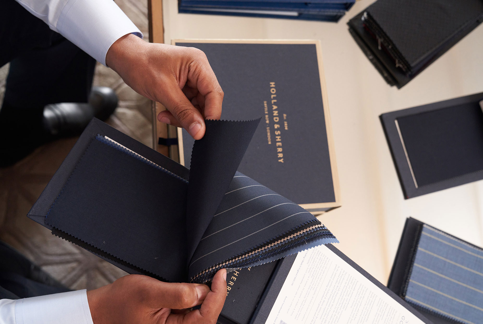 From the initial consultation to the final fitting, every step in the The Visiting Tailor journey is infused with meticulous attention to detail. We source only the finest fabrics from renowned textile houses like Holland & Sherry – Savile Row, ensuring an experience of unbridled luxury and lasting comfort.